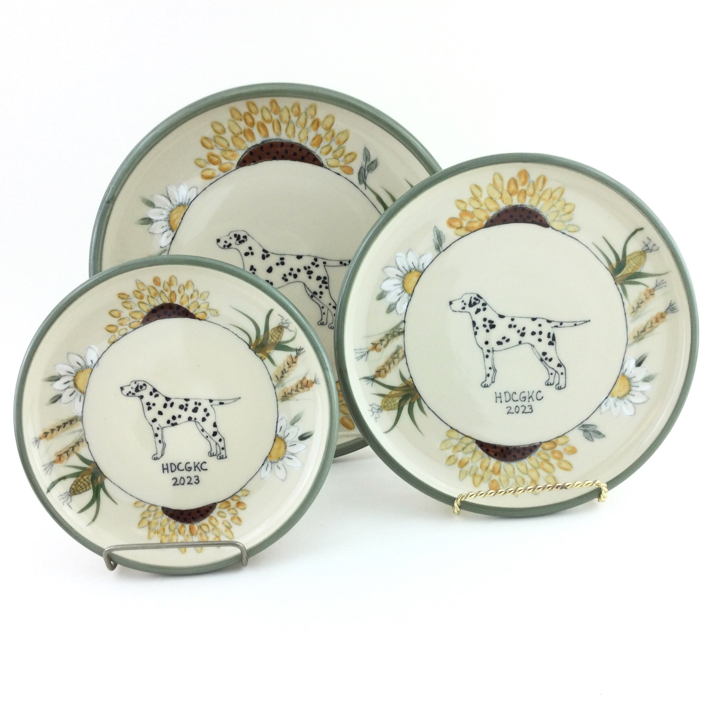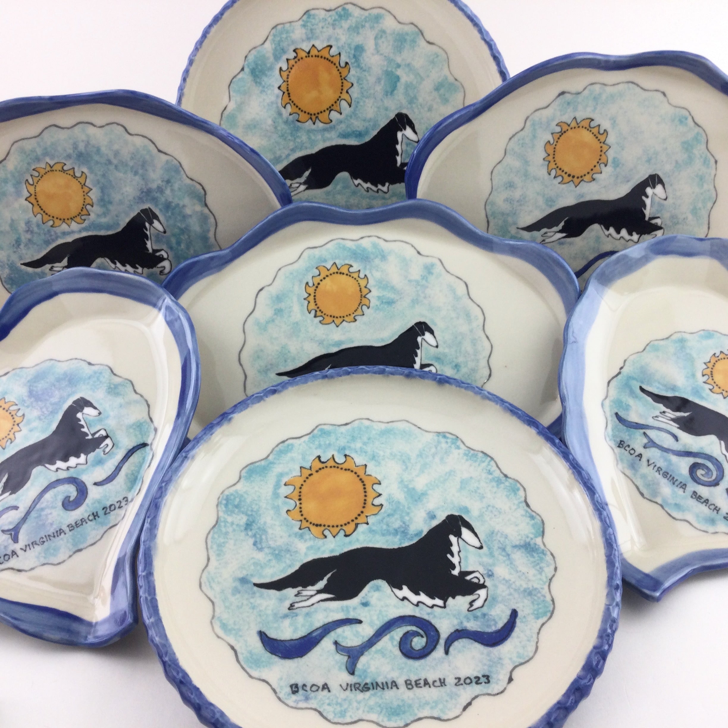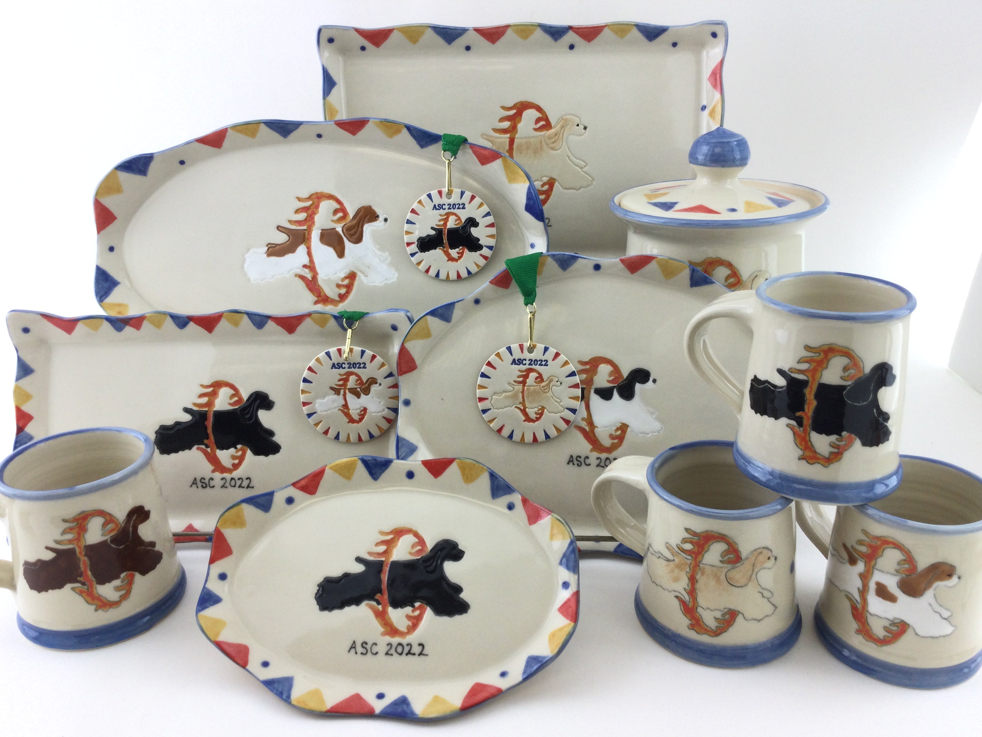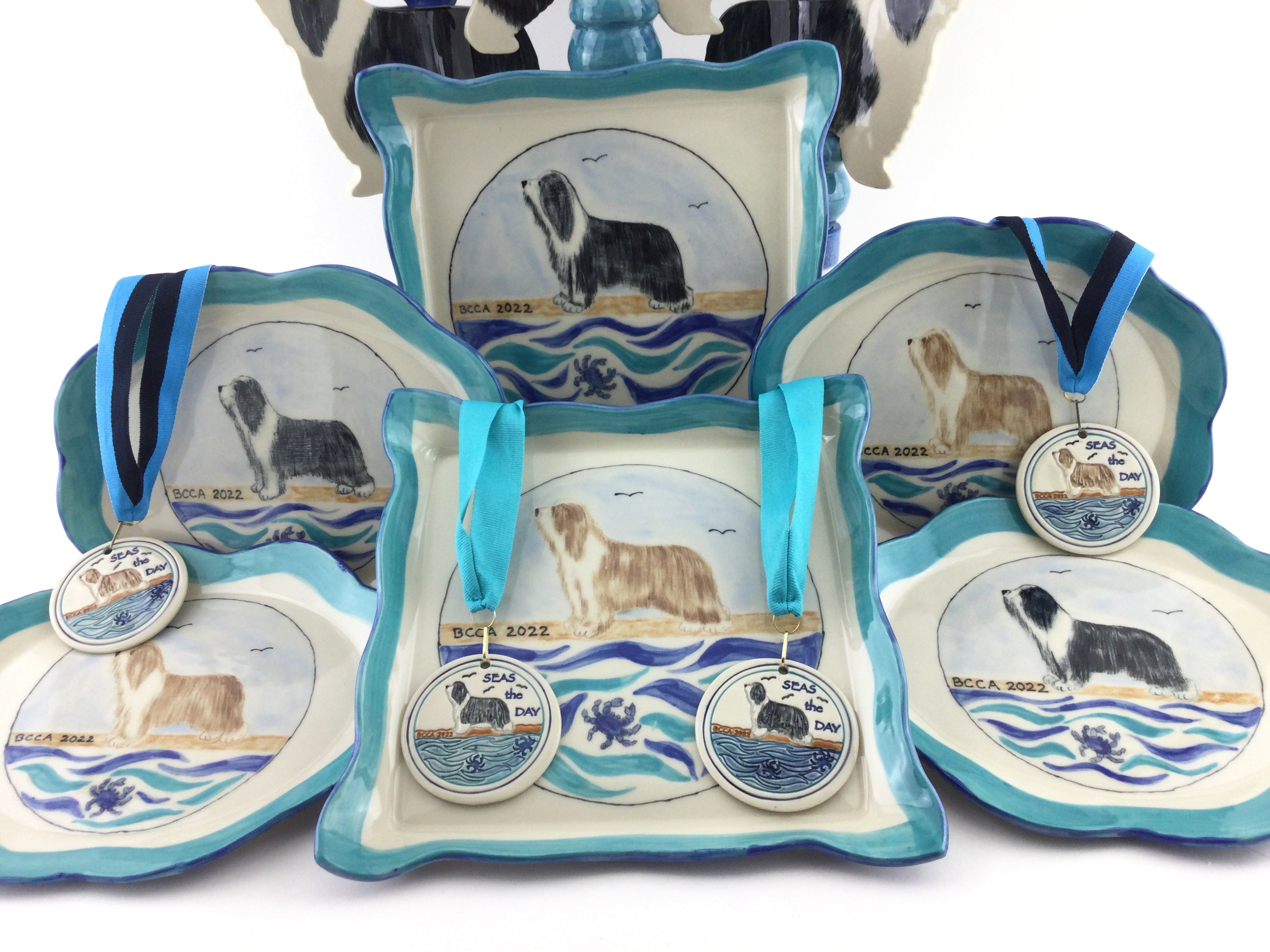 You can choose one of our regular designs (with your breed, of course) or we can work with your club or show logo or inspiration from the location of the show.